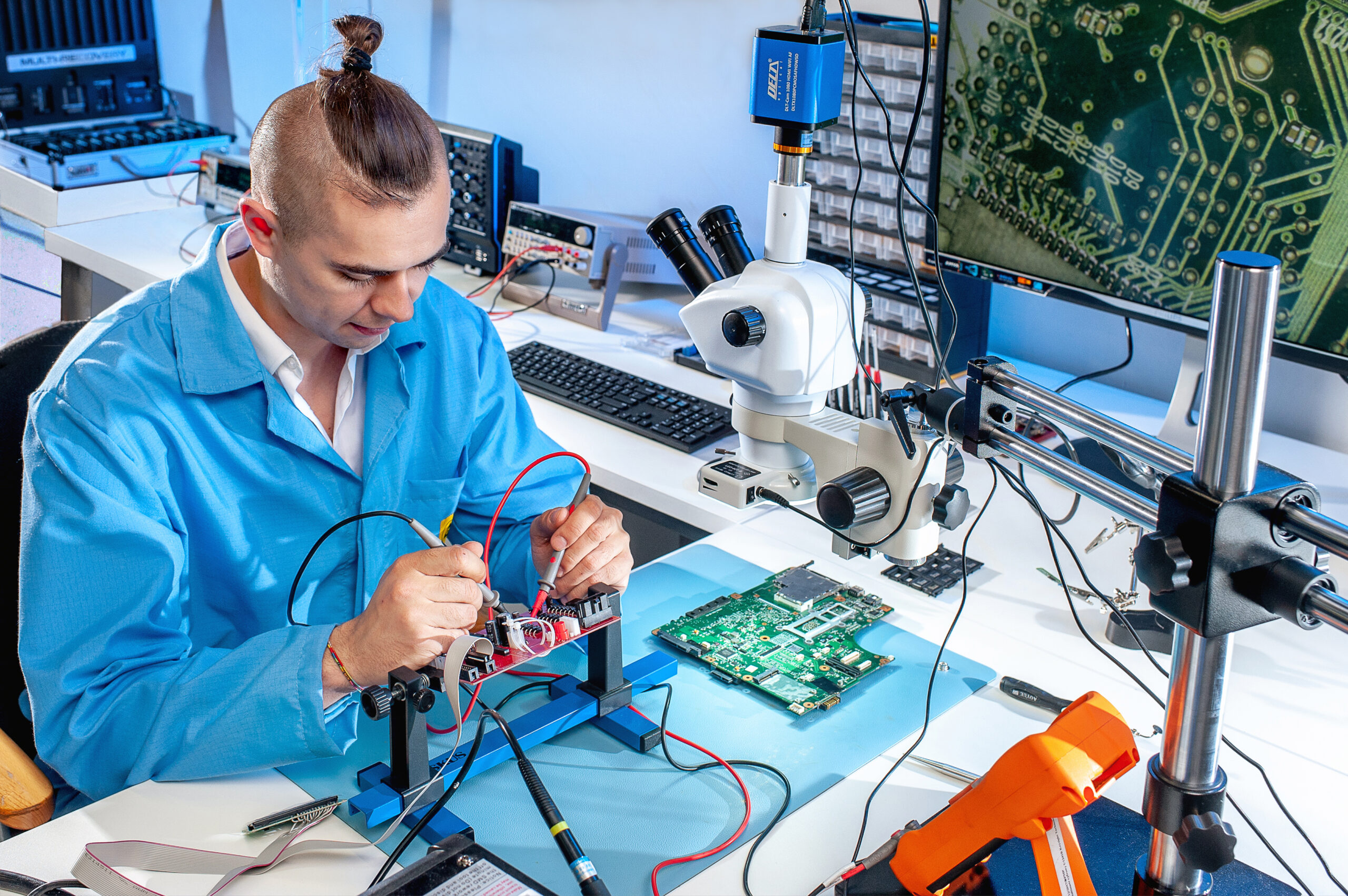 Unser Wissens- und Innovationszentrum ist komplett ausgestattet und an die Arbeit an neuen Technologien angepasst. Erfahrene ProDevice-Mitarbeiter, bestehend aus ausgezeichneten Wissenschaftlern und Ingenieuren, führen zahlreiche Tests und Experimente durch, unter anderem in den Bereichen Materialwissenschaft, Elektronik und Elektromagnetismus. Ein Faraday’scher-Käfig – ein speziell geerdeter Raum, der Einflüsse auf Messergebnisse durch externe Strahlung reduziert– ermöglicht es uns, beispielsweise unsere elektromagnetischen Verträglichkeitstests (EMV) an Degaussern, die wir in den Markt einführen wollen, durchzuführen. Diese Methode der Prototypenprüfung garantiert Sicherheit, was bei der Arbeit mit hohen Spannungen, starken Magnetfeldern oder völlig neuen physikalischen Technologien unerlässlich ist.