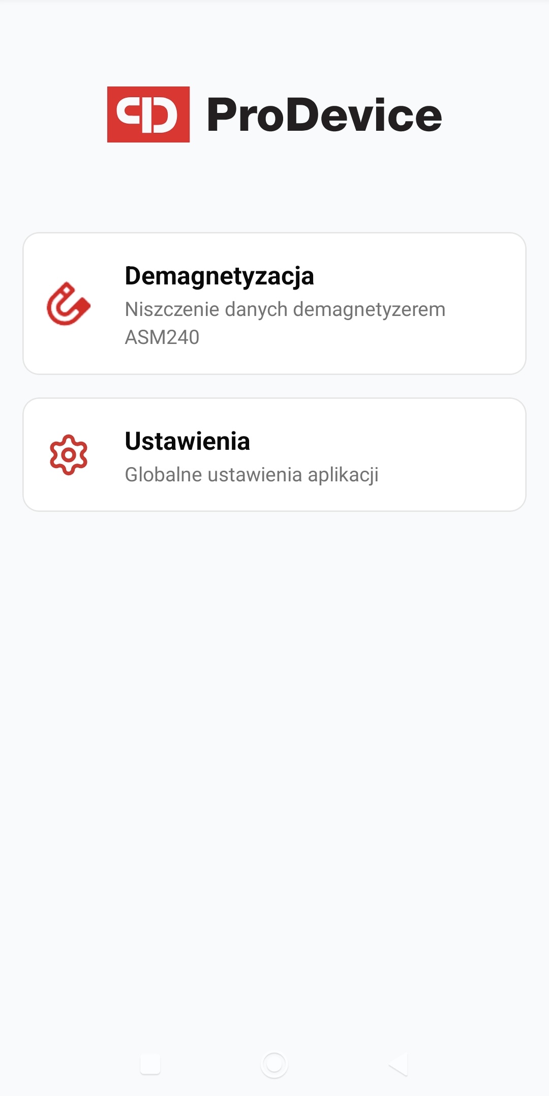 to nowoczesne narzędzie współpracujące z najnowszym demagnetyzerem ProDevice ASM240 w wersji PROFESSIONAL lub ULTIMATE (wyprodukowanym po trzecim kwartale 2025 roku o numerach seryjnych rozpoczynających się od „ASM240”). Umożliwia pełną integrację z urządzeniem, usprawniając dokumentowanie procesu demagnetyzacji nośników danych. Dzięki automatyzacji kluczowych etapów, użytkownik zyskuje szybki dostęp do informacji o przebiegu procesu oraz możliwość tworzenia szczegółowych raportów. Intuicyjny interfejs i nowoczesne rozwiązania, takie jak skanowanie numerów seryjnych, wykonywanie zdjęć czy nagrywanie filmów dokumentujących proces, zwiększają wygodę i efektywność pracy. Aplikacja została opracowana z myślą o bezpieczeństwie, przejrzystości i profesjonalnym zarządzaniu procesem demagnetyzacji.